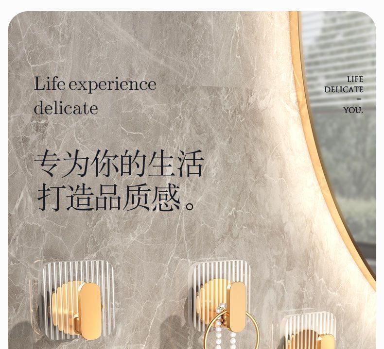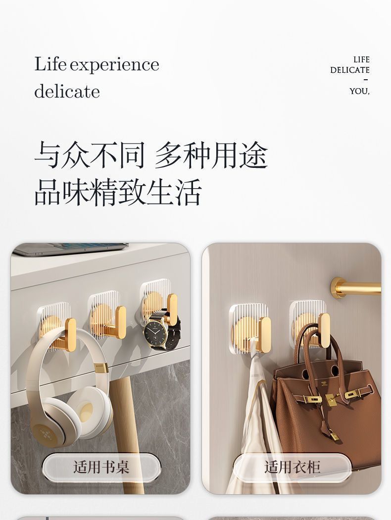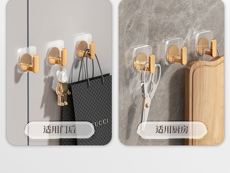 Acrylic Bathroom Hooks Clear Gold Wall Hook Luxury Key Bag Holders Punch-free Home Organization and Storage Bathroom Organizer